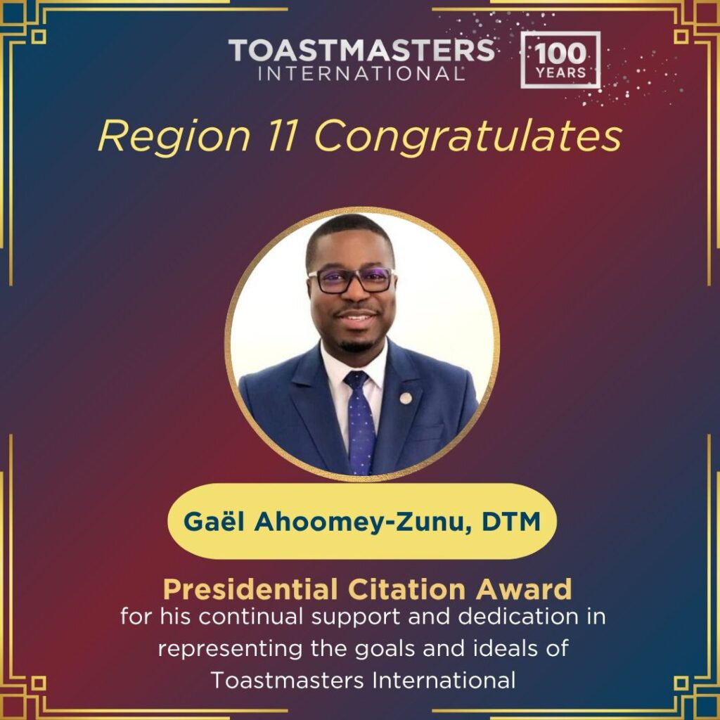 Le District 94 adresse ses plus chaleureuses félicitations à notre cher Past Directeur de District, GAËL AHOOMEY-ZUNU, DTM, pour l’obtention de la distinction Presidential Citation